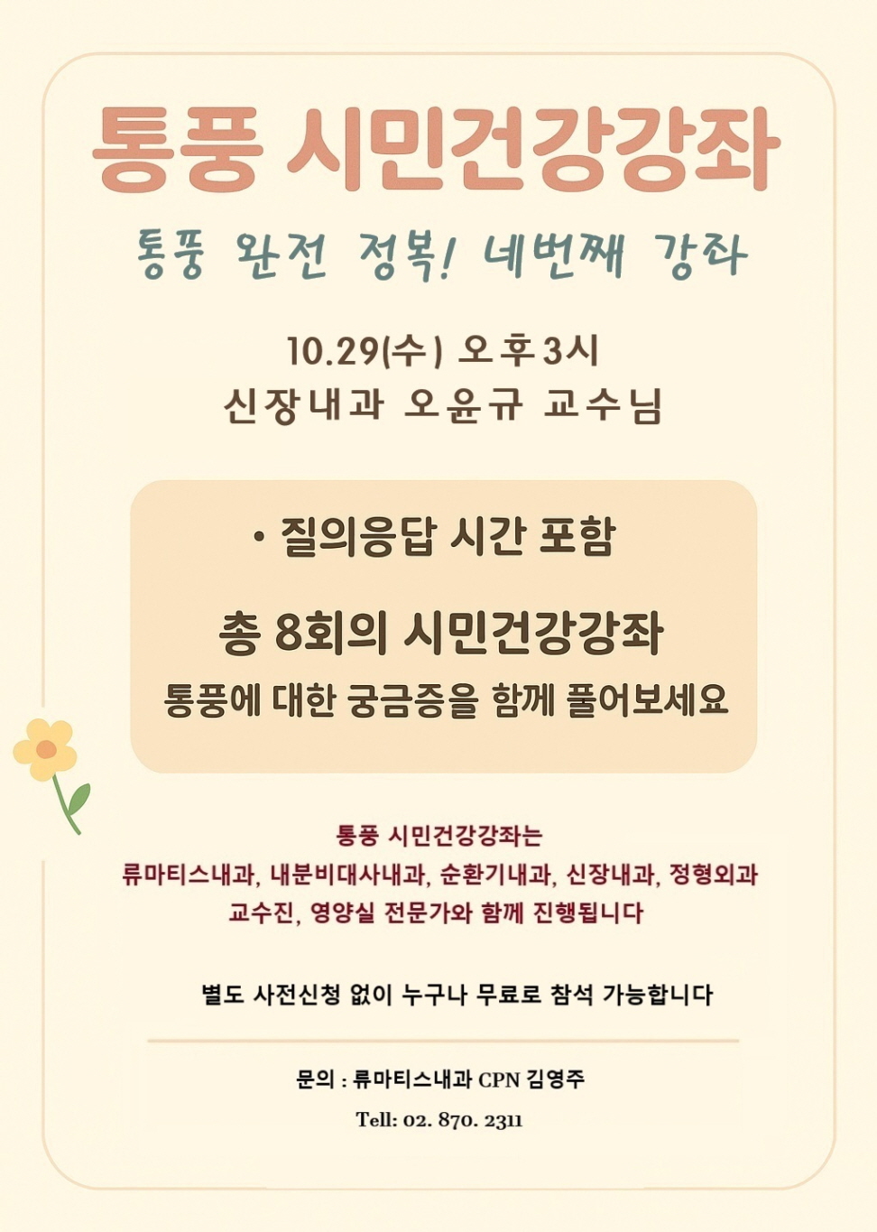 통풍의 동반 질환 "통풍이 있으면 콩팥도 위험하다" [통풍 시민건강강좌]