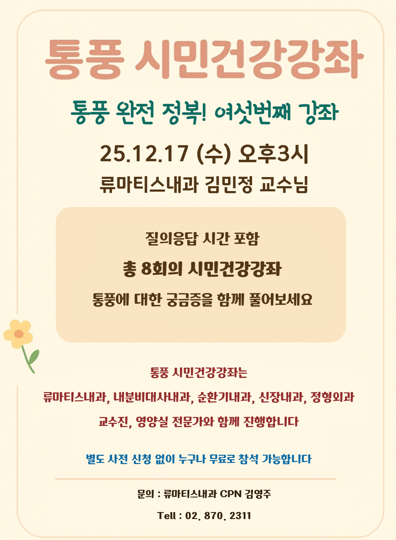 "암 생존자의 심혈관 질환 예방과 관리" 시민건강강좌