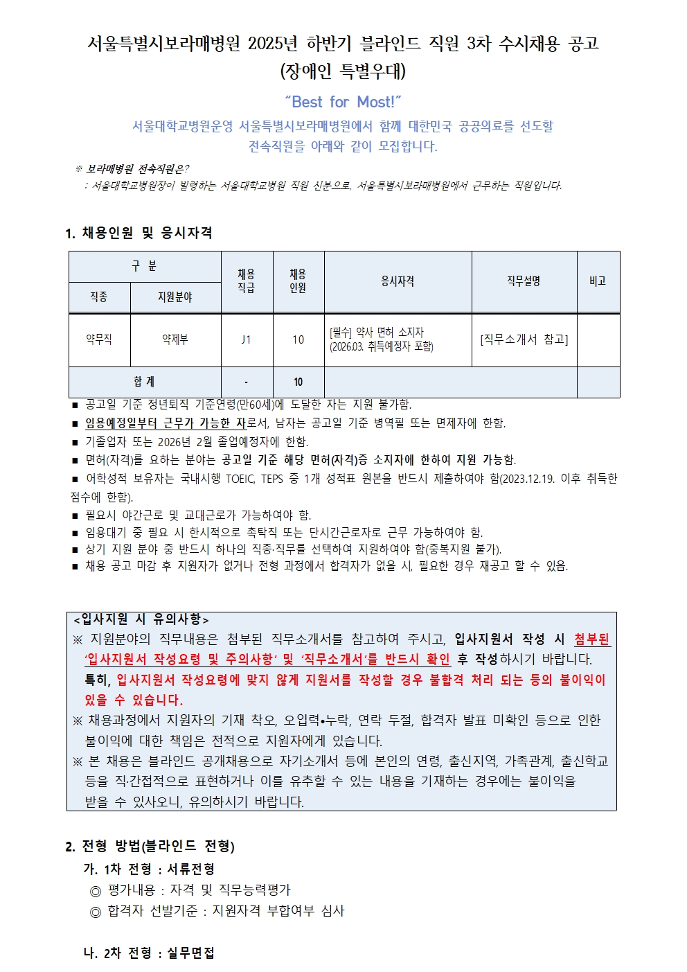 2025년 하반기 3차 수시채용(장애인 특별우대)(약무직)