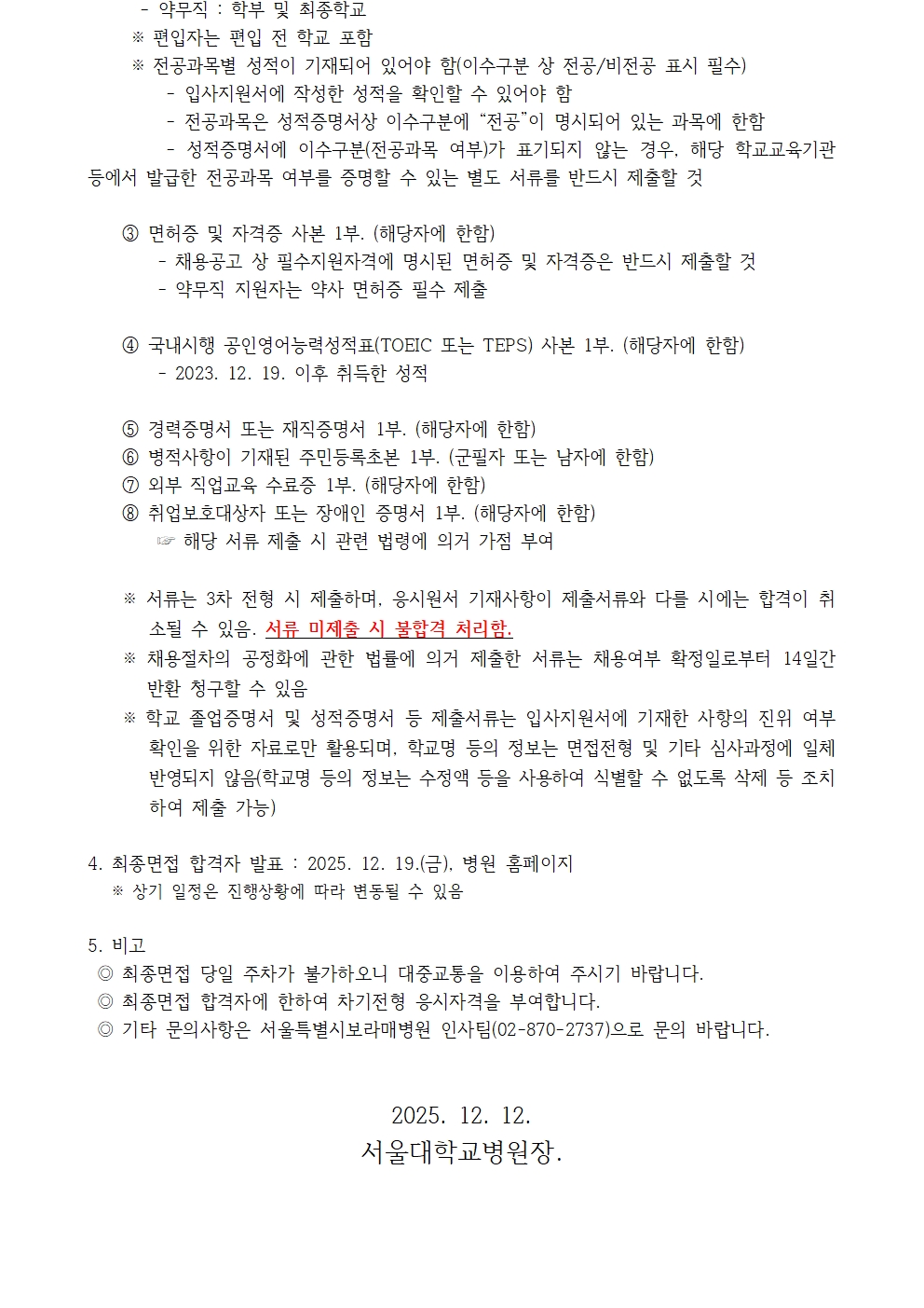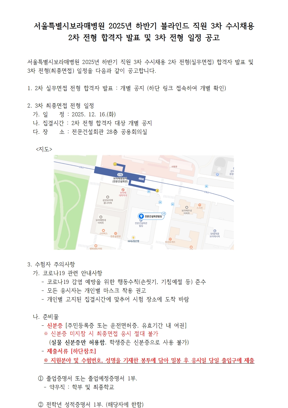 2025년 하반기 직원 3차 수시채용(약무) 2차 전형(실무면접) 합격자 발표 및 3차 전형(최종면접) 일정 공고