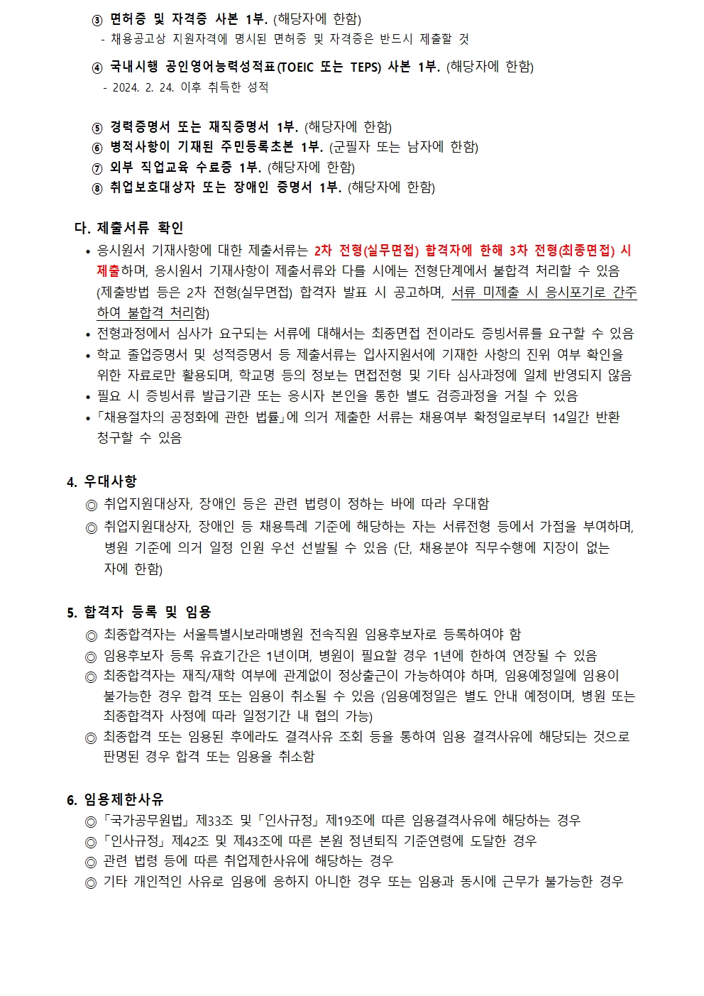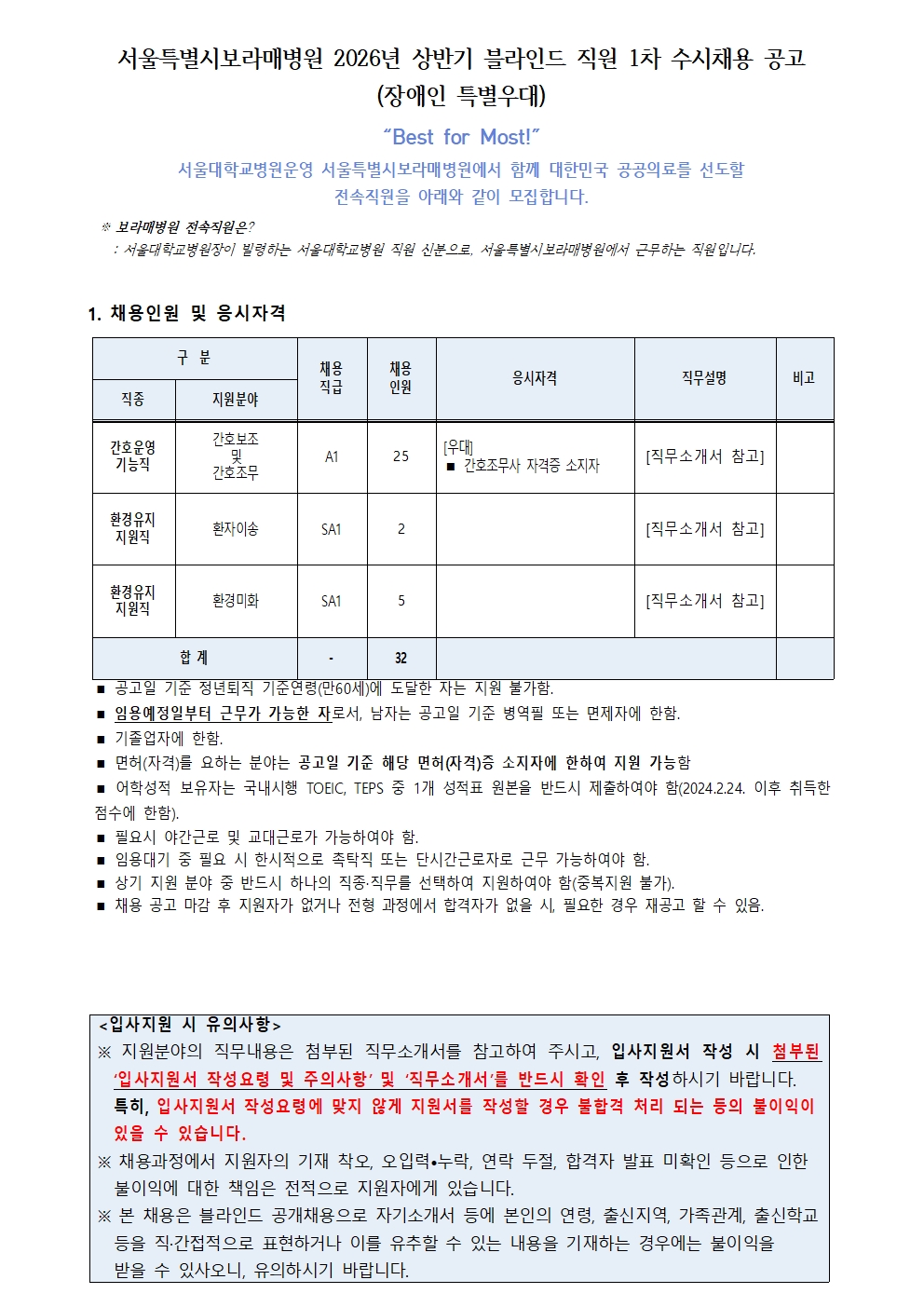 서울특별시보라매병원 2026년 상반기 블라인드 직원 1차 수시채용(장애인특별우대)