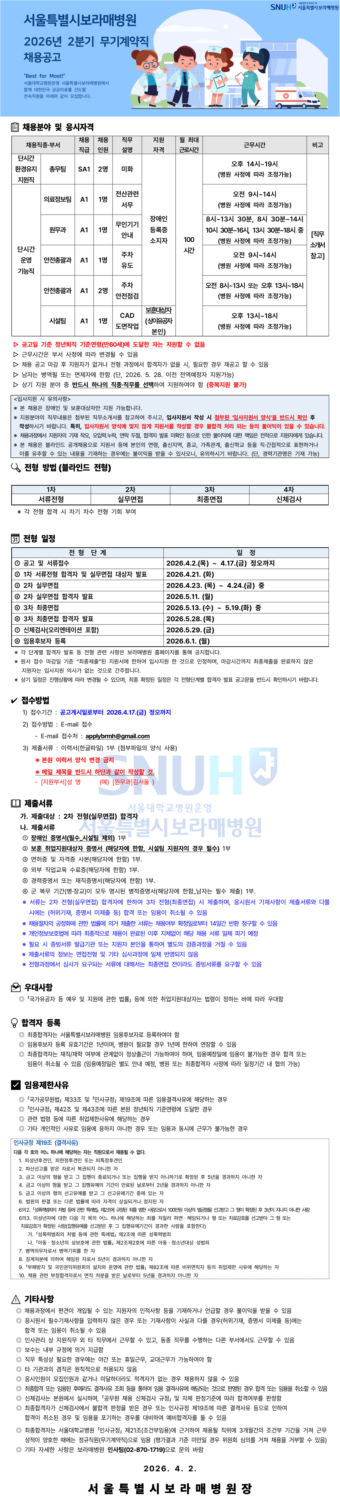 2026년 2분기 무기계약직(장애인·보훈) 채용 공고