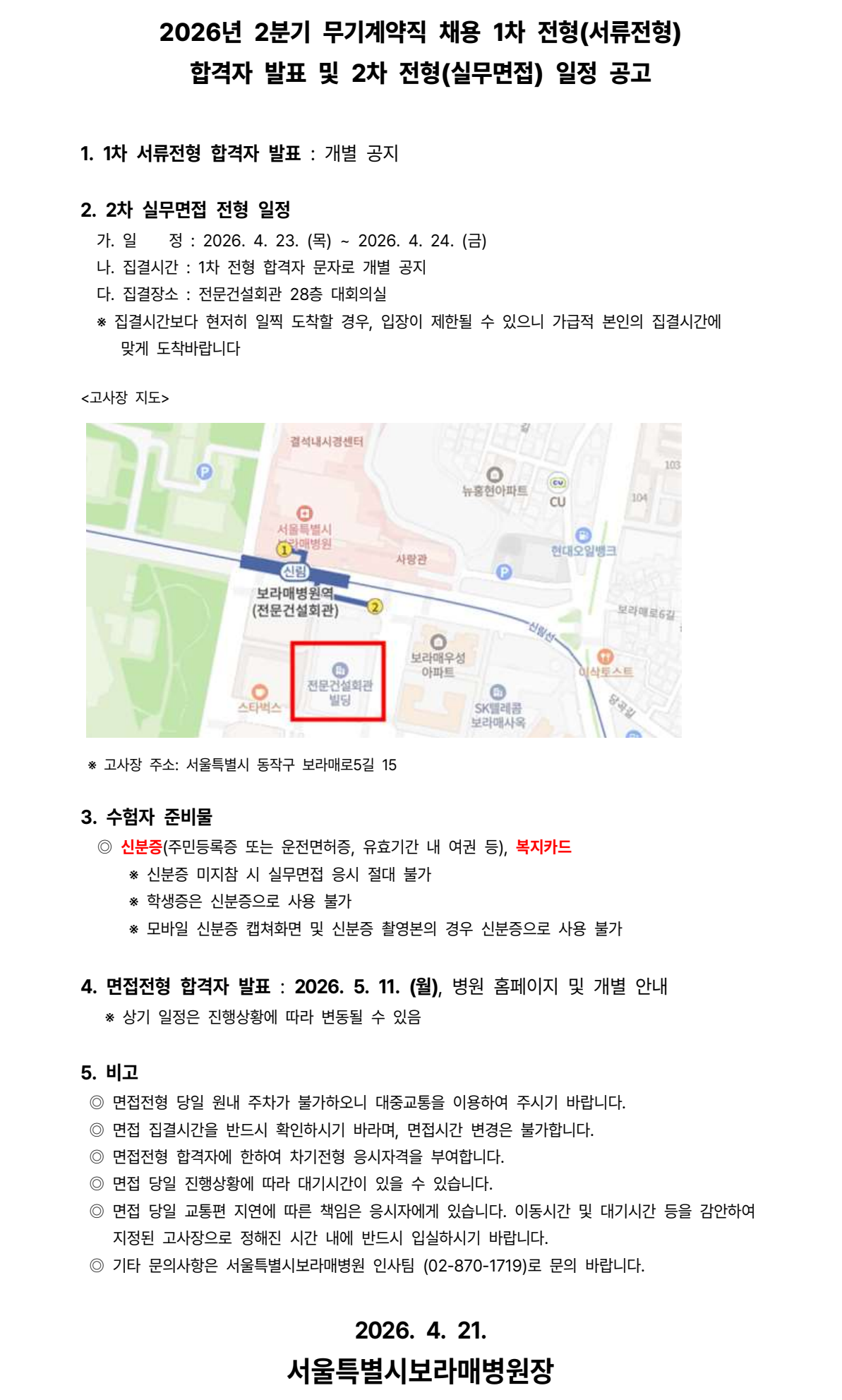 2026년 2분기 무기계약직(장애인) 채용 1차 전형(서류전형) 합격자 발표 및 2차 전형(실무면접) 일정 공고
